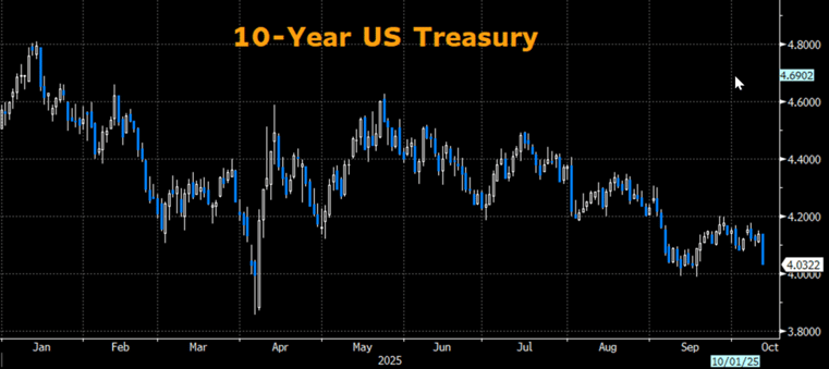 The government shutdown remained a key focus for the markets last week, although trading activity was largely subdued—until Friday. Before diving into Friday’s volatility, it’s worth highlighting that, despite the shutdown, the Bureau of Labor Statistics (BLS) will recall certain employees to ensure the release of the Consumer Price Index (CPI) data scheduled for October 15. This decision stems from the Social Security Administration’s need to obtain third-quarter CPI figures by November 1 to calculate annual cost-of-living adjustments. Additionally, another pressure point regarding the shutdown for both Democrats and Republicans involves concerns about potential frustrations for air travelers. Though deemed ‘essential’ and required to work despite the lack of a paycheck until the shutdown is resolved, concerns have arisen that air traffic controllers' and TSA personnel's work slowdowns may impact air travel safety and passenger experience should a reduction in flights or longer security screening begin to arise.