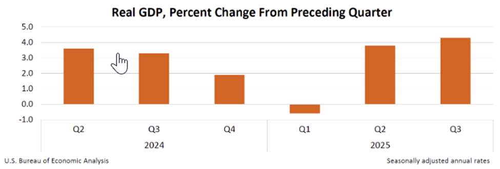 The government shutdown created ripple effects for market participants who rely on timely economic data to guide investment decisions. Most notably, the release of official initial and secondary estimates for Real GDP was delayed by nearly two months. This postponement left investors grappling with uncertainty about the state of the economy well into the end of Q4.