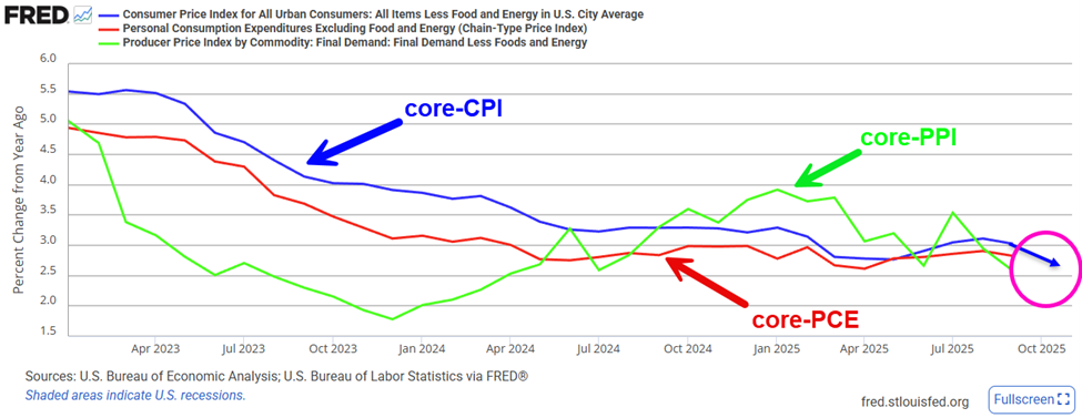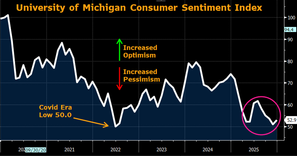 - “Low-Fire, Low Hire” labor situation essentially overshadowed concerns about inflation as the “K-shaped” economy separates high-income and low-income consumers.